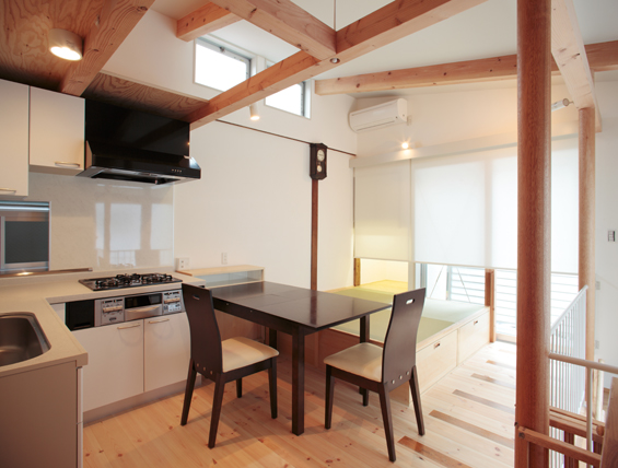 親世帯にも子世帯にも畳の小上がりを設け、座ったり立ちあがったりの動作が楽になるだけでなく、収納も兼ね備えました。